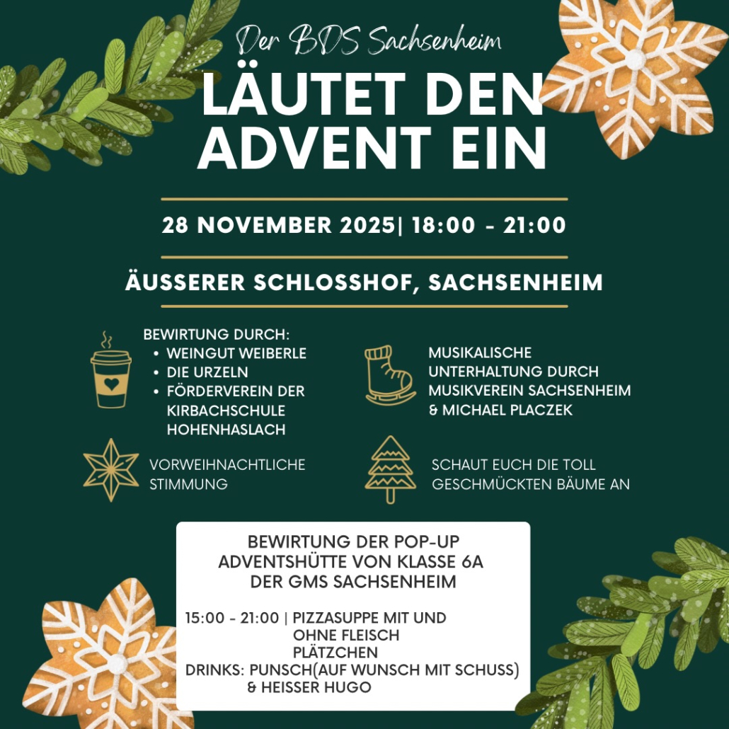 wir laden Sie ganz herzlich zur Teilnahme von zwei Weihnachtsaktionen des BDS Sachsenheim ein.